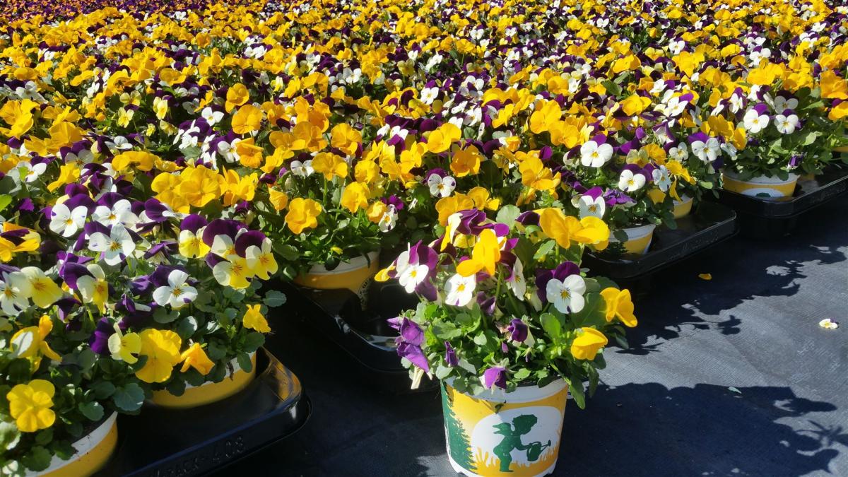 Viola cornuta XXL im gelben 11er harzerfrischendem Topf.